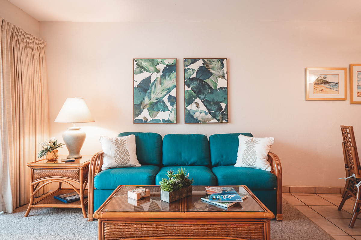 Because of its price range and beautiful location across from Kamaole Beach Park III, Hale Kamaole is a popular option in the Kihei condominium neighborhood. The periphery of the complex is the resident parking lot and the single road that loops the estate. The structures border the outside of the parking area, with expansive open areas with green grass in the center of the site, ideal for picnics or sunbathing. Two solar-heated pools, barbecue areas with spectacular ocean views and a tennis court are facilities for private usage for owners and visitors.